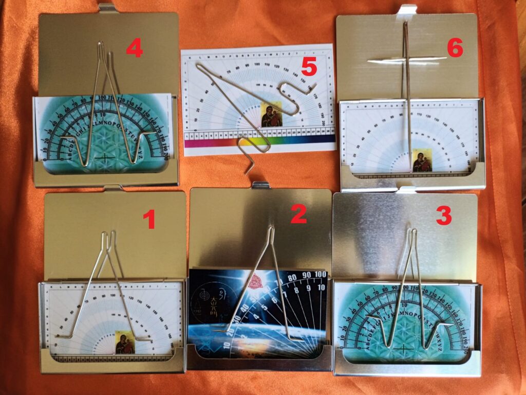 1 – ansa radiestezica model 1. Argint 925/000, 1,2 mm grosime. Raportor cu iconita.